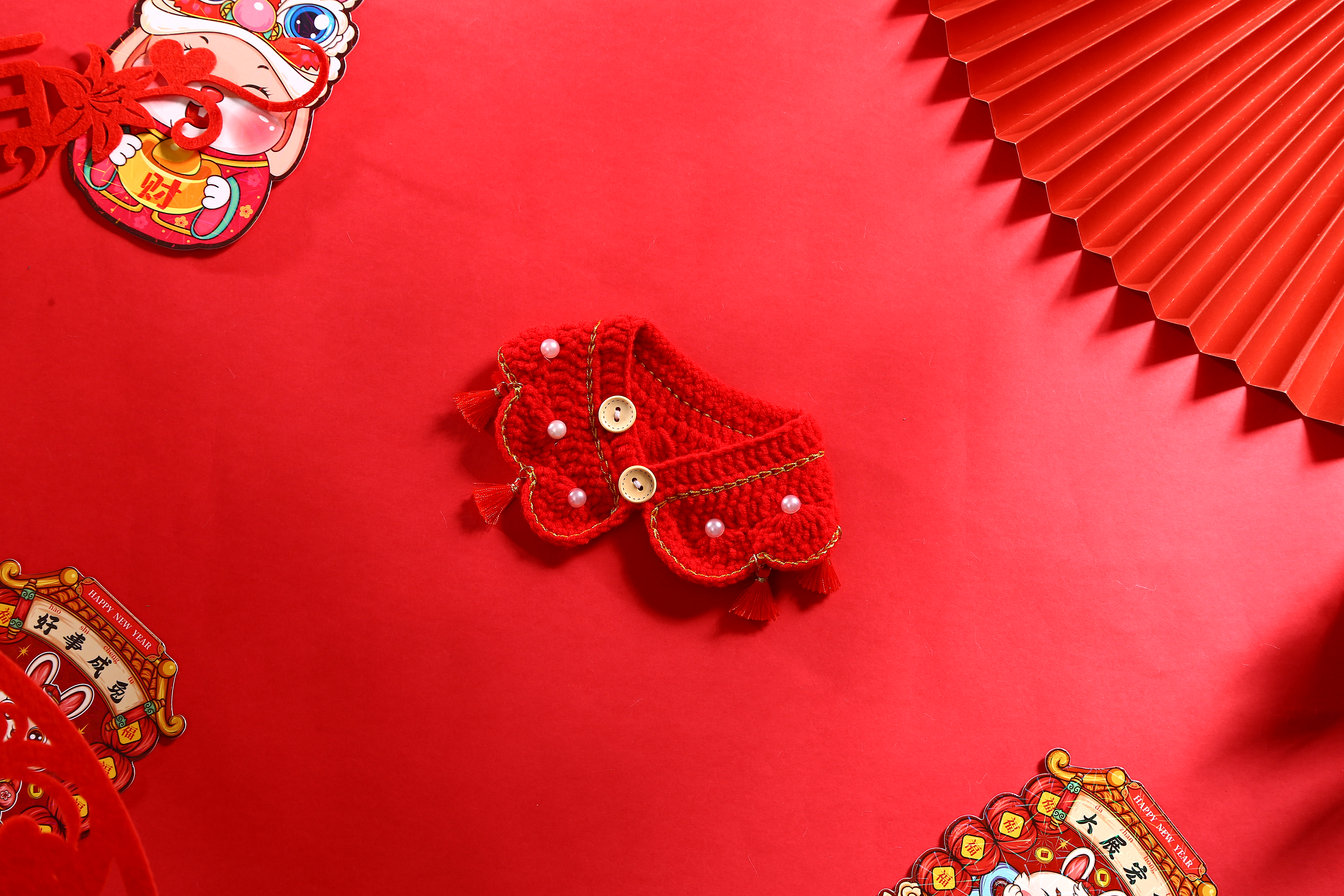 🧧 Lunar Blessing Scarf 🧧 Dress your pet for prosperity! Our Chinese New Year scarf combines traditional auspicious symbols with comfortable wearability. Perfect for festive gatherings and those lucky red envelope photos!