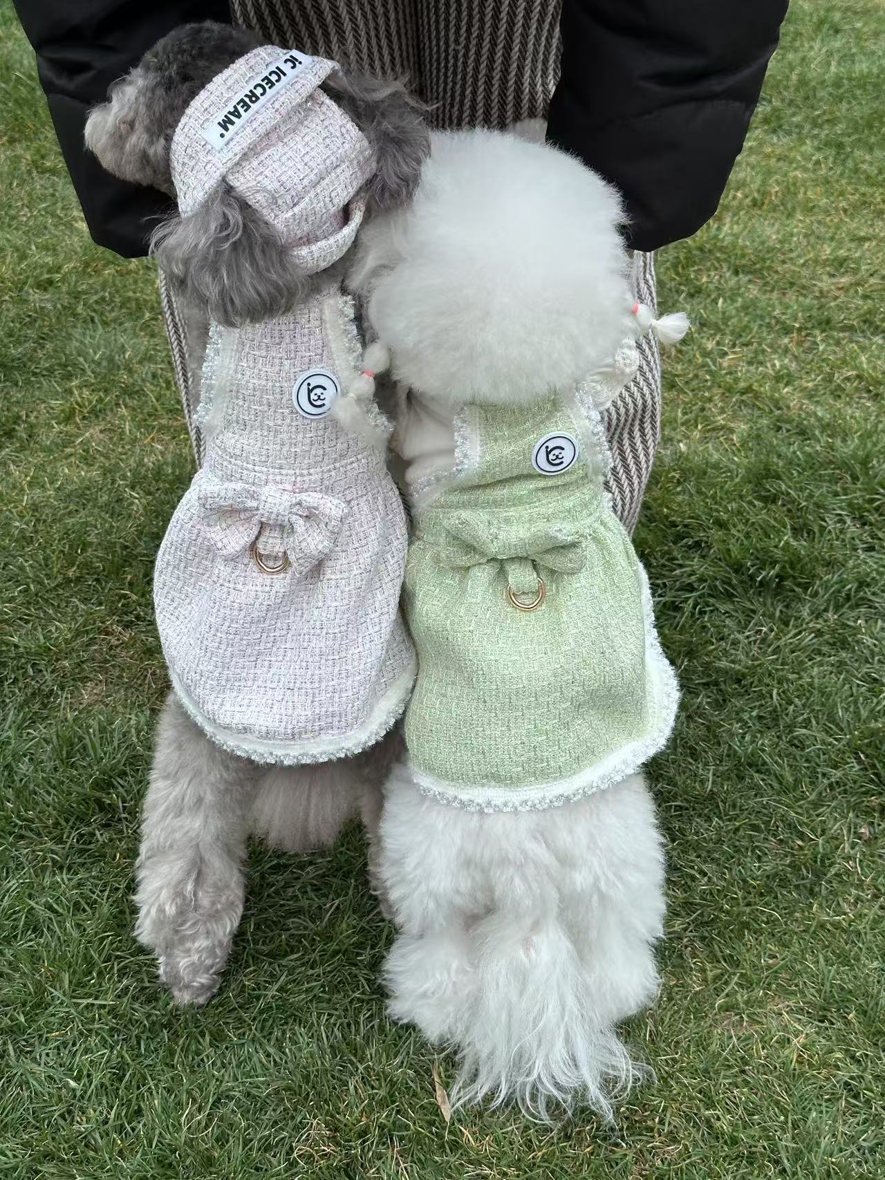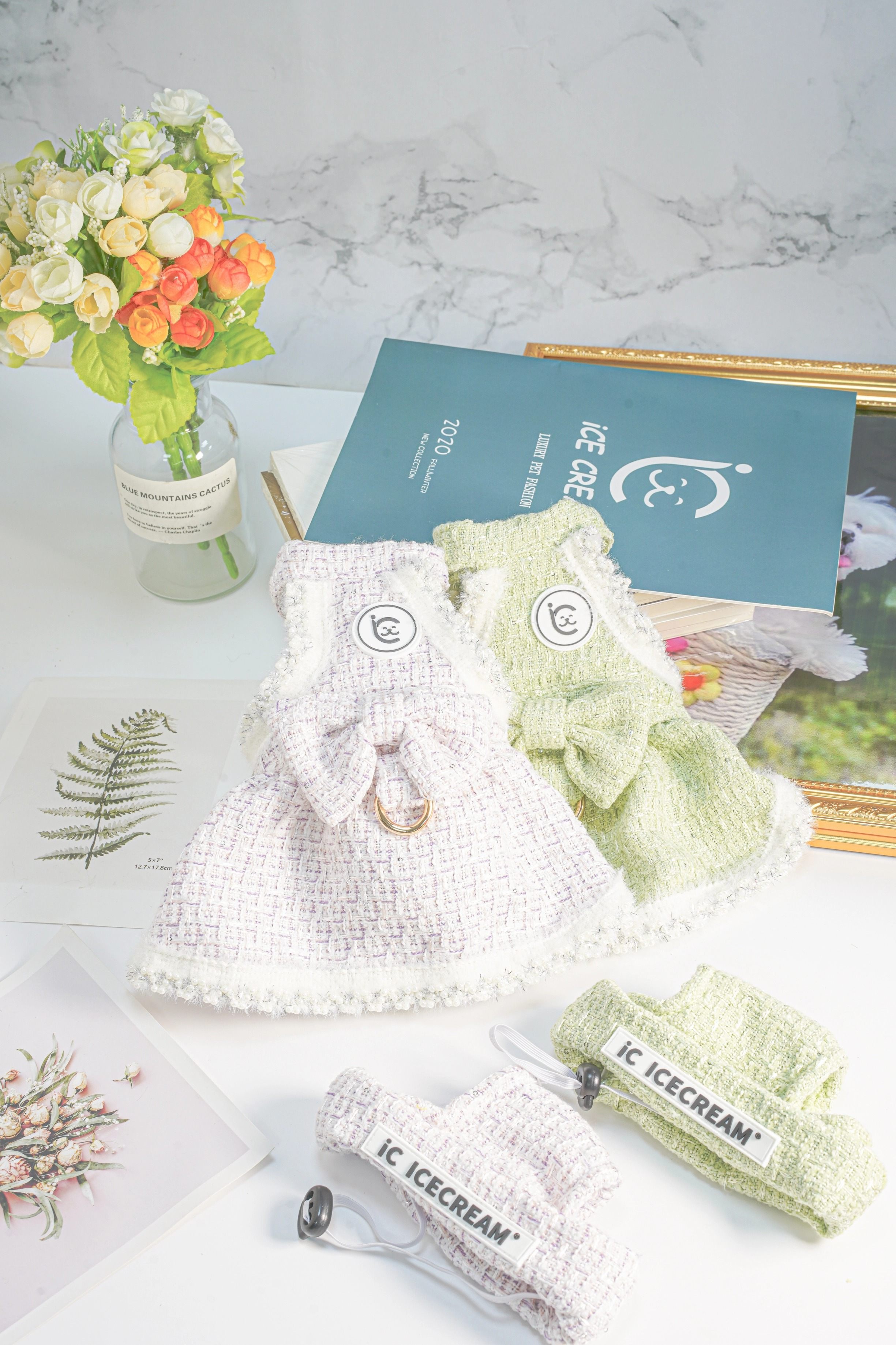 Introducing the pinnacle of pet fashion—where luxury meets the leash. The Chanel Romance Gown is not merely an outfit; it's a statement. Meticulously crafted with fabric inspired by the iconic Chanel design, this gown embodies the classic elegance and refined spirit of the world's most celebrated fashion house. From its exquisite texture to its flawless silhouette, every detail has been considered. The ensemble includes a matching leash, ensuring that every element of your pup's appearance is cohesively and impeccably chic. Complete the Couture Look: For the ultimate expression of style, pair the gown with our Chanel Romance Hat. This perfectly coordinated accessory elevates the ensemble to a true collector's piece, making your furry fashion icon the undisputed star of any soiree.