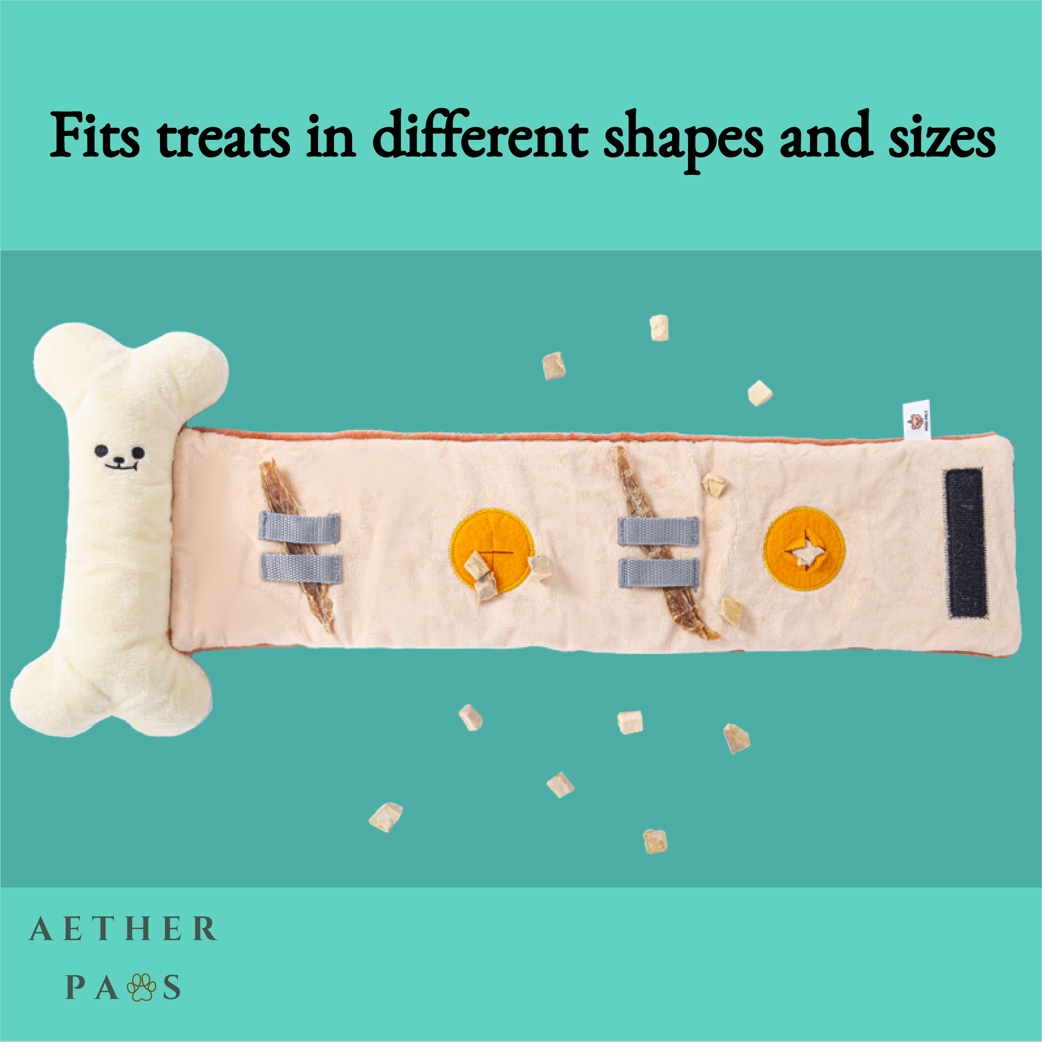 HIDDEN TREAT POCKETS: Various-sized internal nooks and crannies allow you to hide everything from tiny training treats to larger kibble or jerky strips.