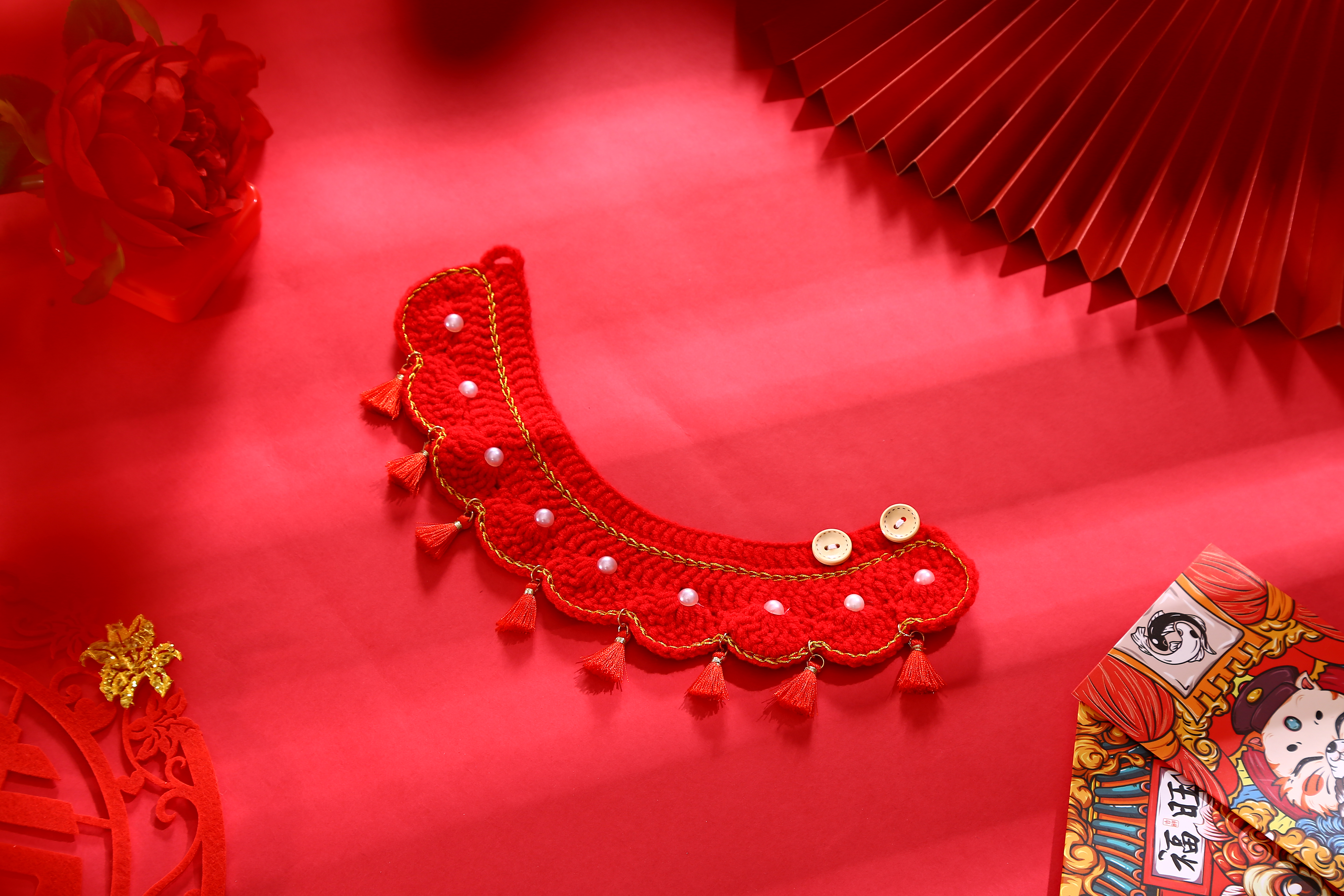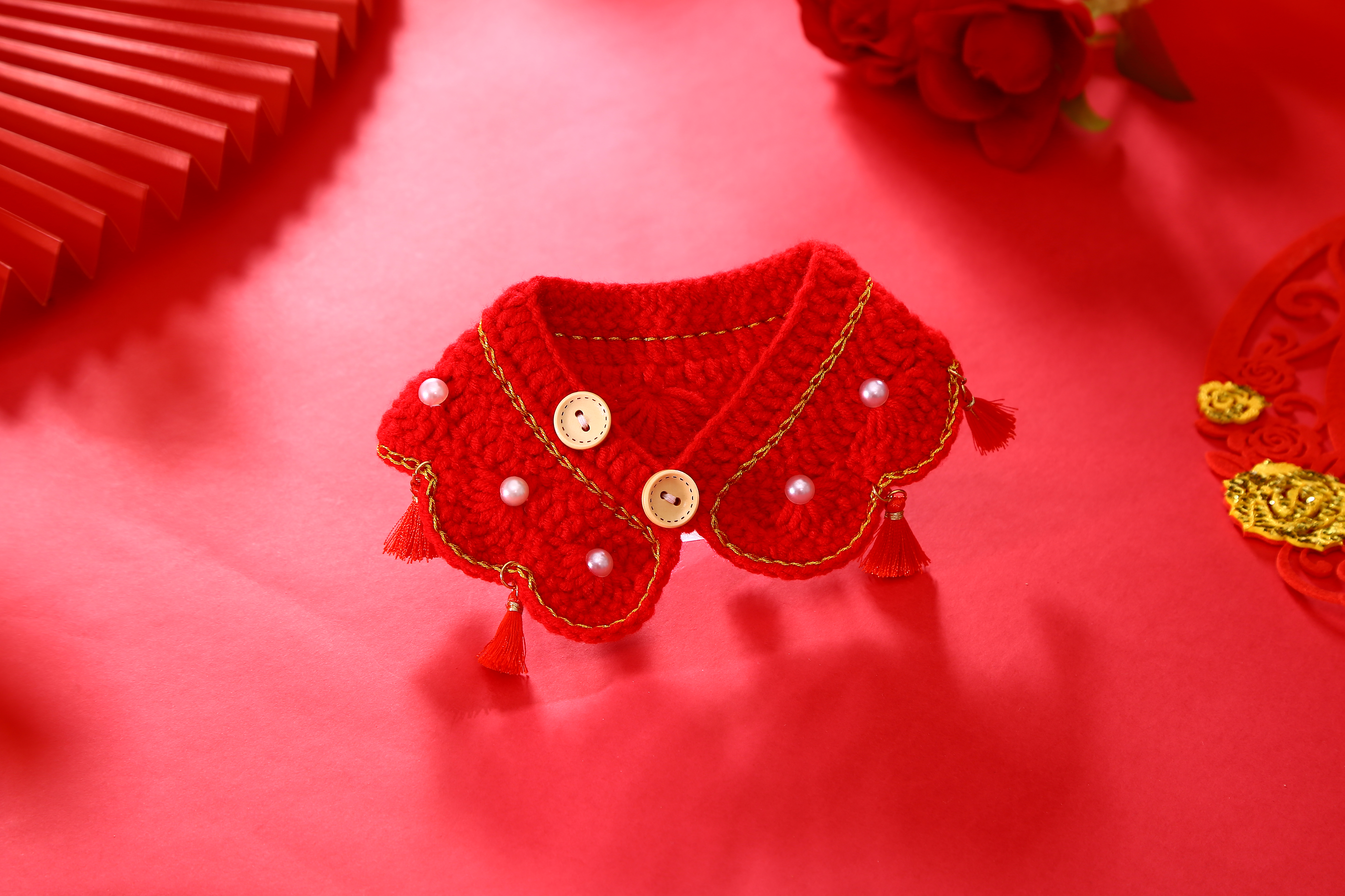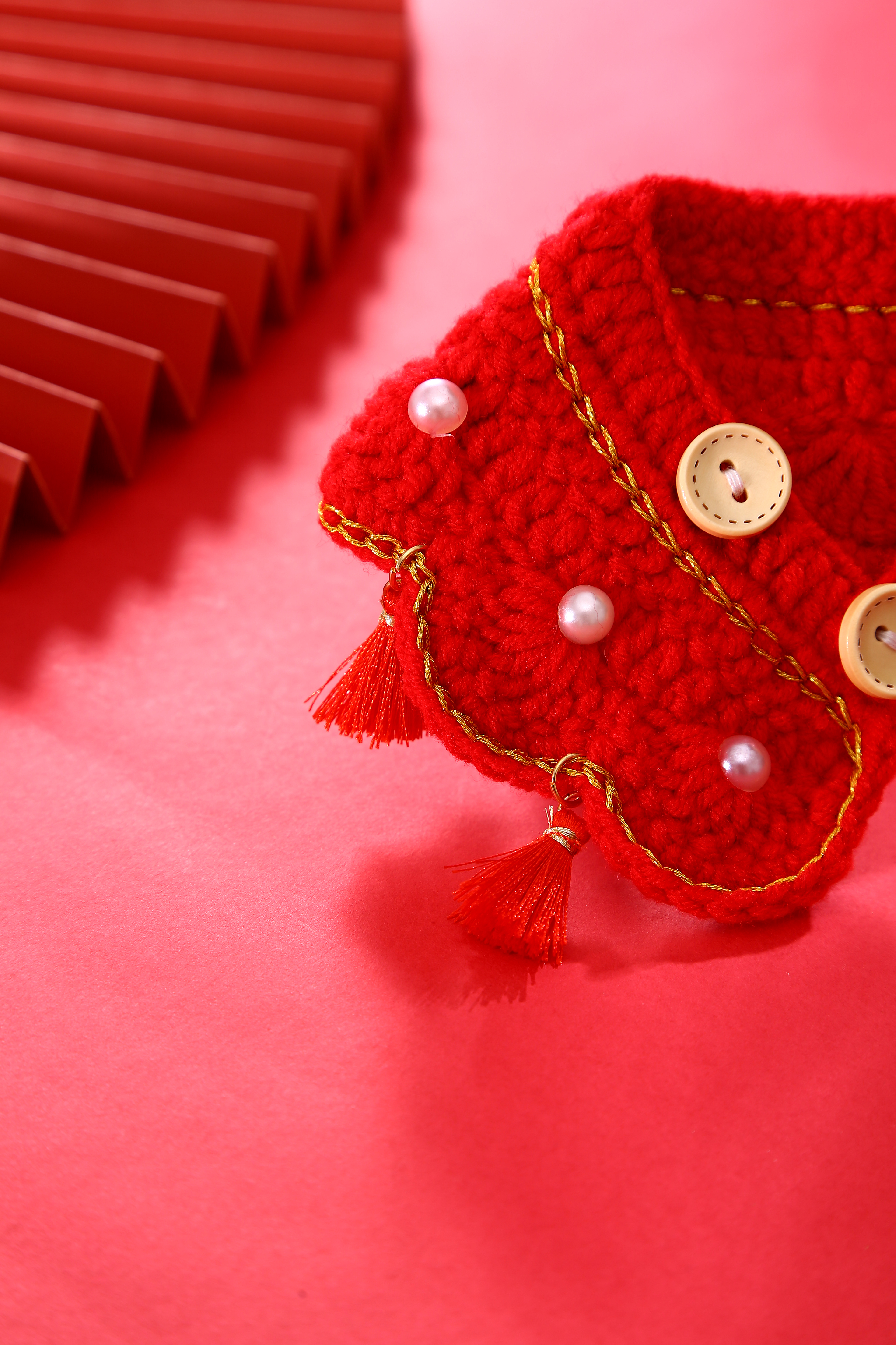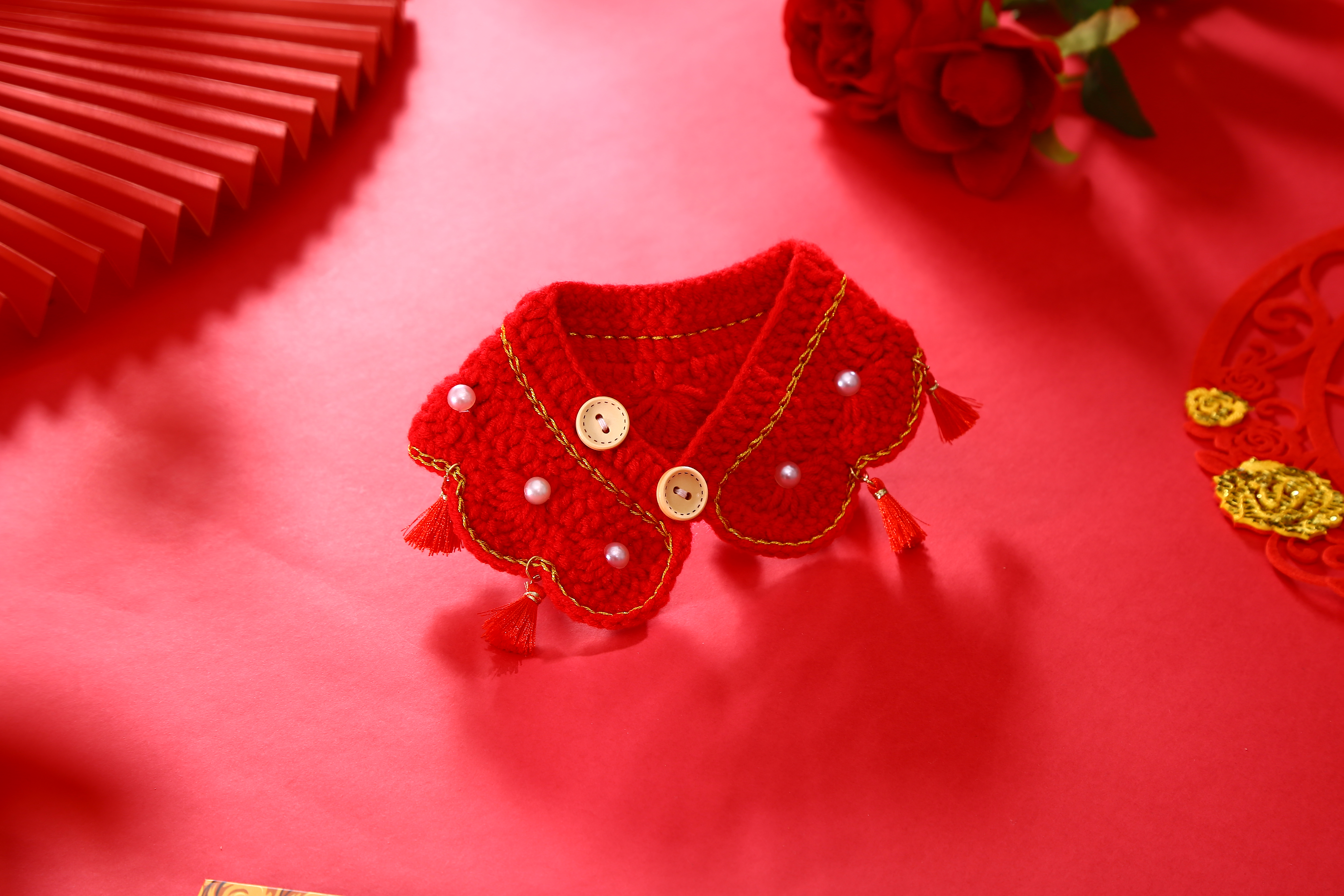 Get ready for Chinese New Year! Our beautiful, hand-knitted milk cotton shoulder shawl is back. Drape your pup in ultra-soft, luxurious comfort and festive style. The perfect accessory for a prosperous year ahead! 🧧