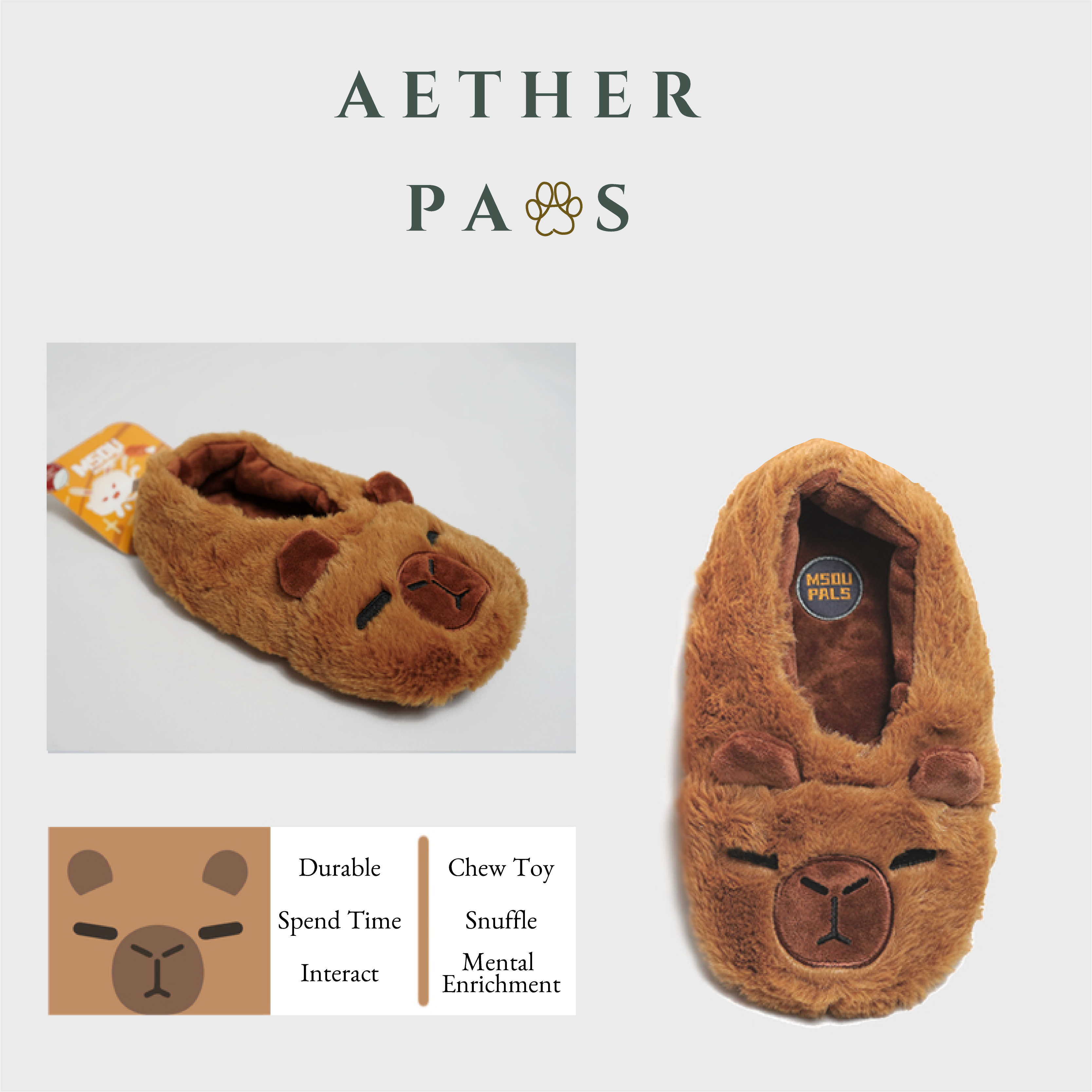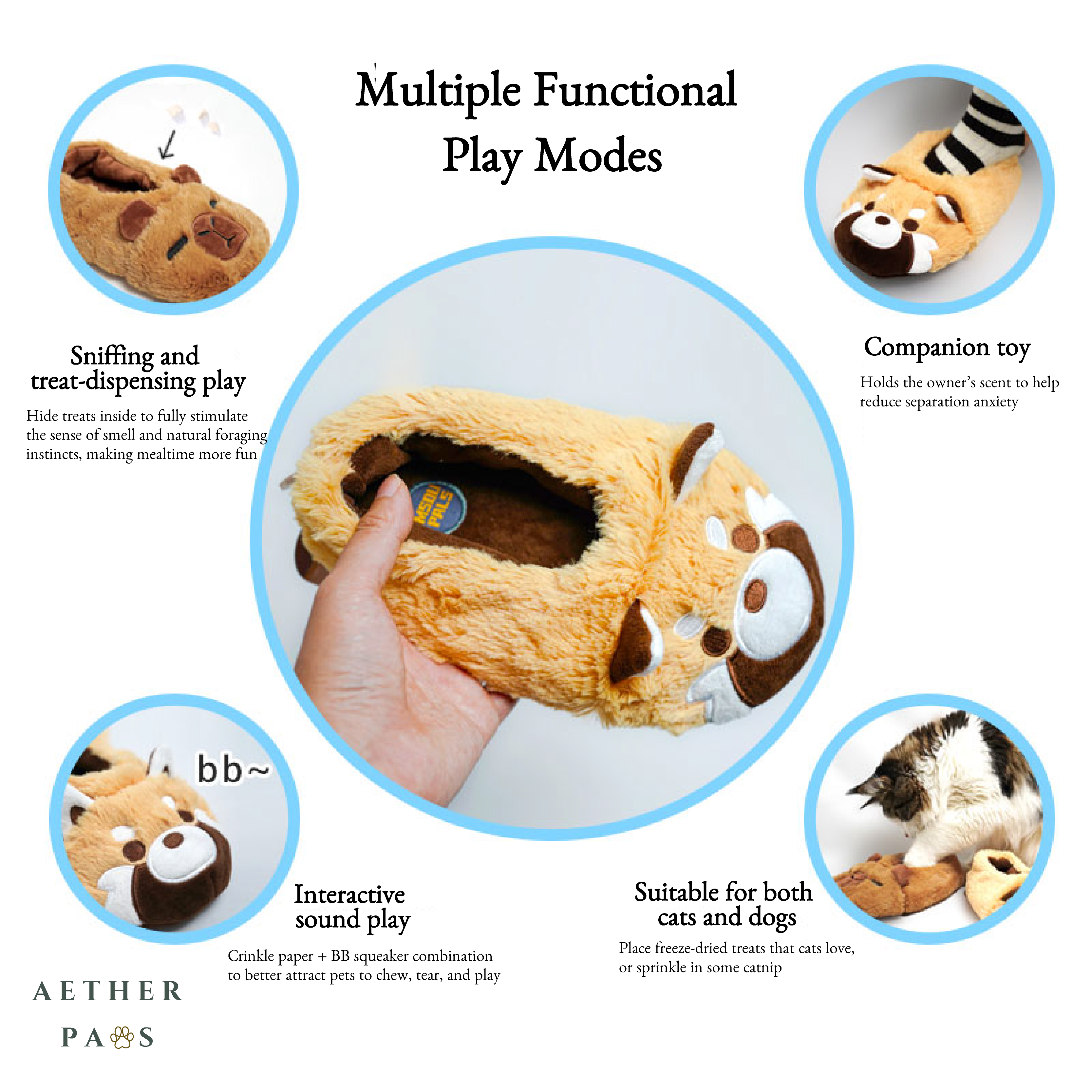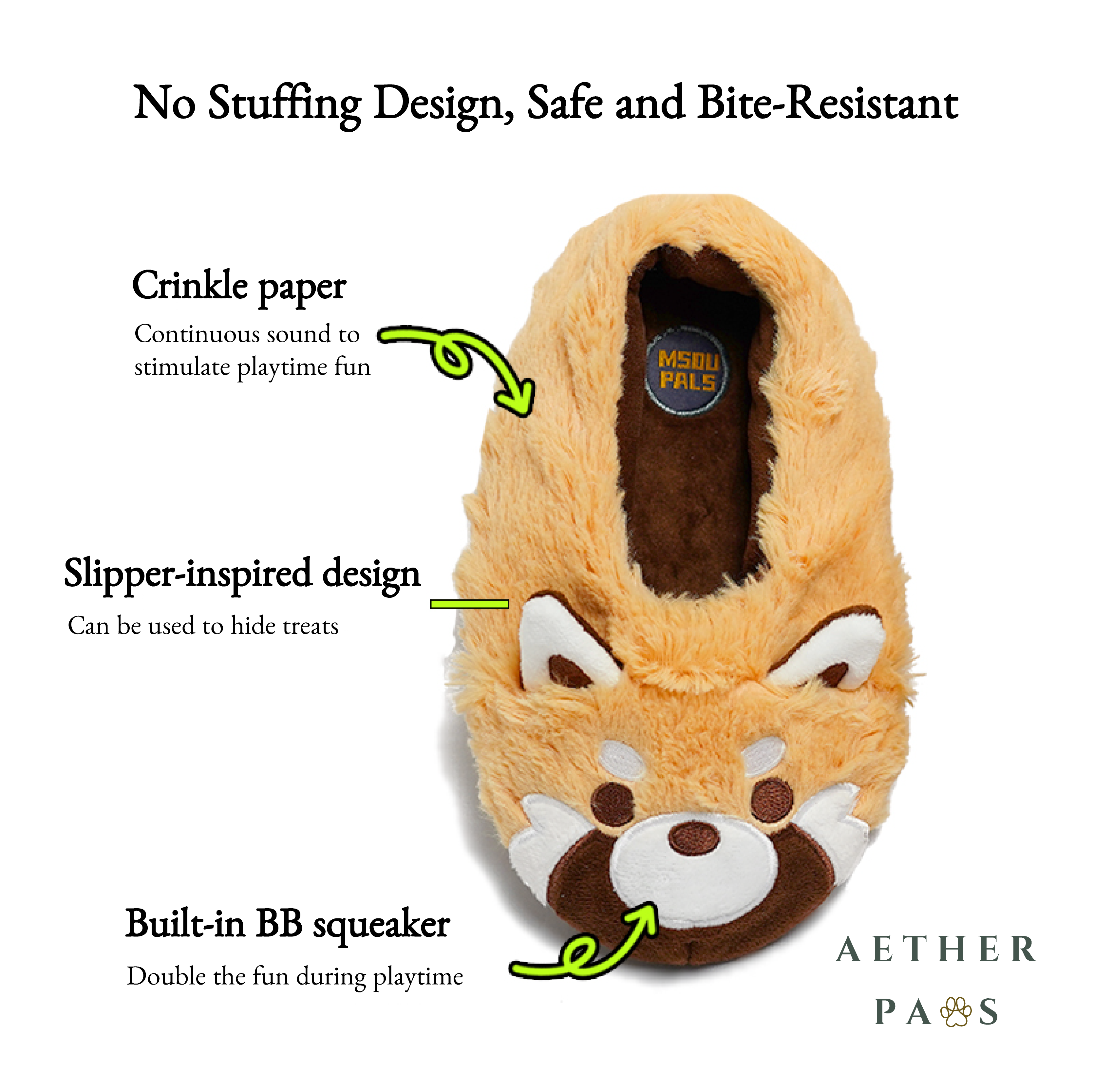The No-Stuffing Snuffle Slipper Series features a safe, durable, stuffing-free design with treat-hiding pockets for sniffing fun. Multiple Functional Play Modes: 1. Sniffing and treat-dispensing play 2. Interactive sound play 3. Companion Toy 4. Suitable for both cat and dog