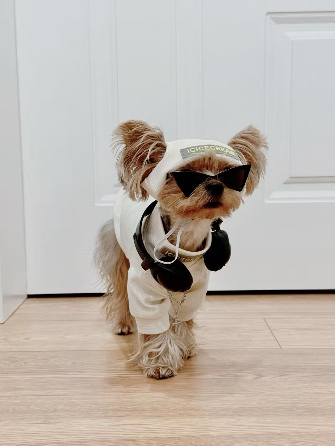 The star of the set is the textured waffle knit top—a streetwear staple known for its breathable comfort and cool, laid-back look. This iconic necklace adds that final touch of swagger, making your pup look like they just stepped out of the studio.